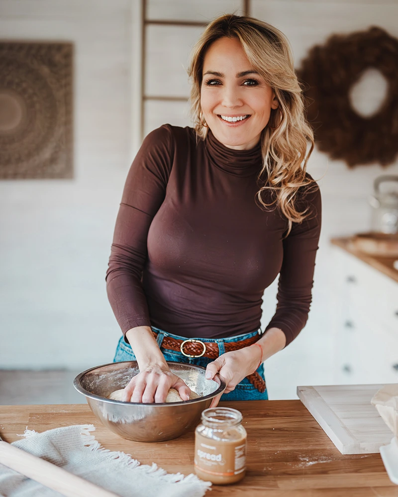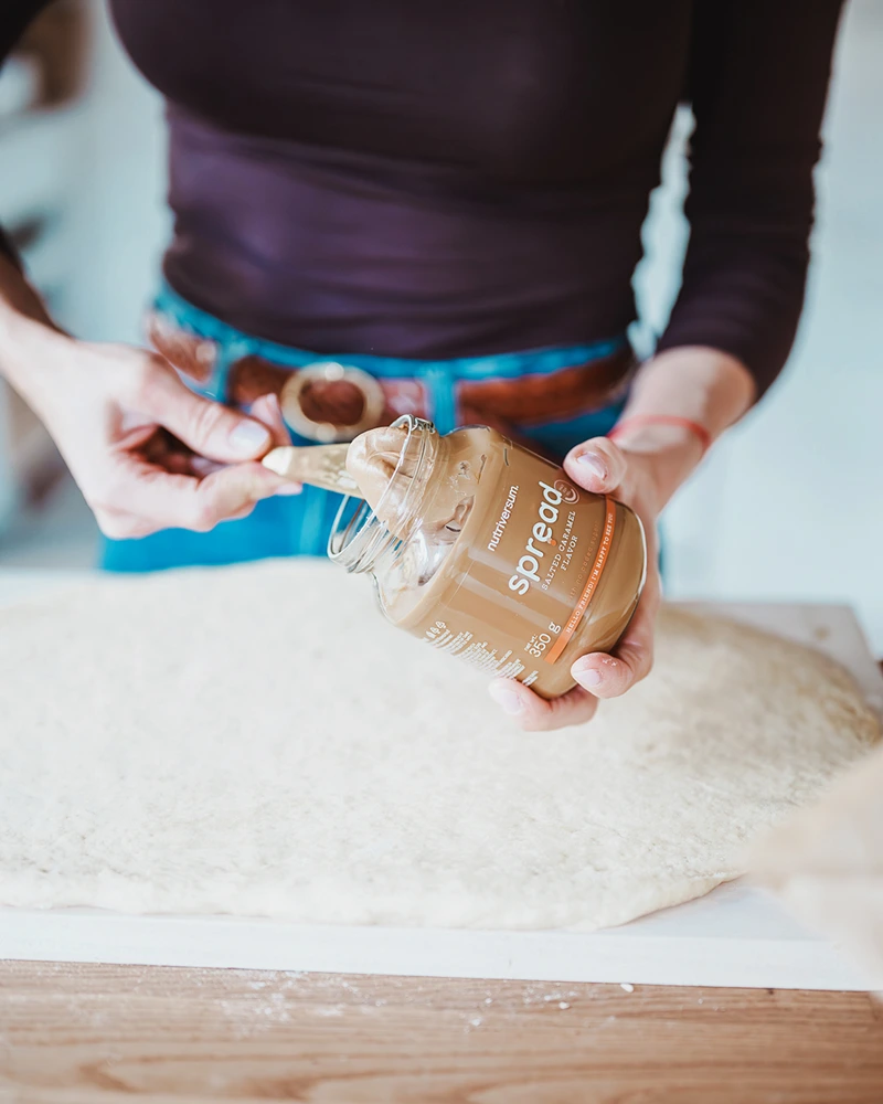 Anschliessend ausrollen, mit einer zuckerfreien Salzkaramellcreme
